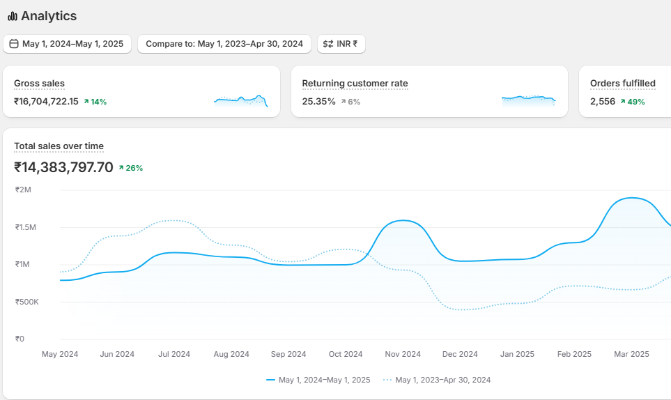 Return on Investment (ROI): 8x (every ₹1 spent on advertising generated ₹8 in revenue)